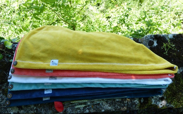 Serviette de tête pour enrouler vos cheveux après avoir mis le masque et soigneusement démêlé les cheveux afin que le produit agisse et répare la structure du cheveu. Serviette en fibre de bambou, produit écologique et fabriqué en France. Explications d’utilisation de la serviette sur l’emballage